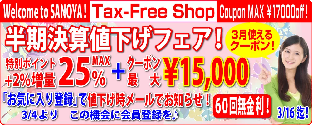 3月 半期決算値下げフェアスタート!お気に入りしていただくと、お値下げ時お知らせがいくようになります!3/4~