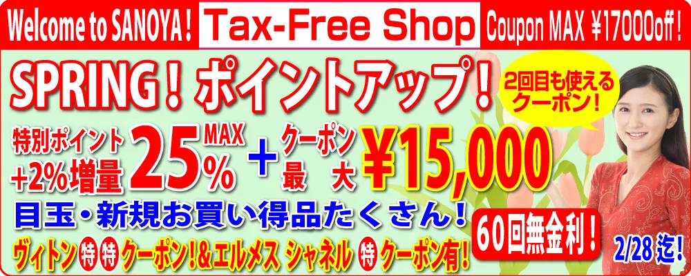 東京の質屋「さのや」の、質預り・ブランド品買取、金買取は高査定、更にお得な買取クーポンもあります、宅配買取は、宅配買取キット無料でお送りいたします。お気軽にLINE査定もご利用ください、電話での査定の相談もお気軽にご利用ください。質屋の貸付・ご融資も高査定です。金買取も毎日高価買取中です、手数料などは一切頂きません。ブランド品、時計、バッグ、宝石、衣類、古着、雑貨、アクセサリーの販売は、カードも現金もポイント還元中。免税販売(Tax-Free)大歓迎!更に60回無金利にもポイントが付きます、今月の「さのや」は、お客様にとって凄くお得な月です、新規商品、お買い得品をどんどん掲載いたします。質預りと買取、販売の「さのや」は、東京都 JR池袋駅の次の駅の大塚駅に大塚駅前店、大塚本店、巣鴨駅前に巣鴨駅前店(東京都・豊島区・北大塚)