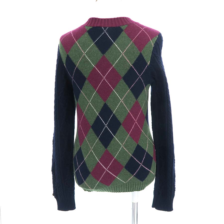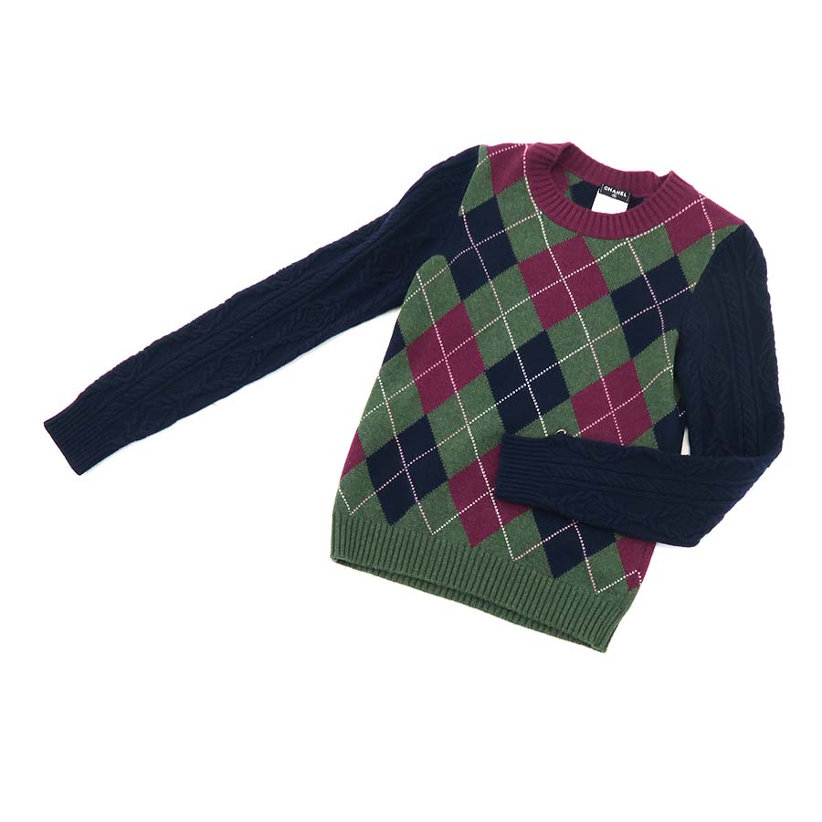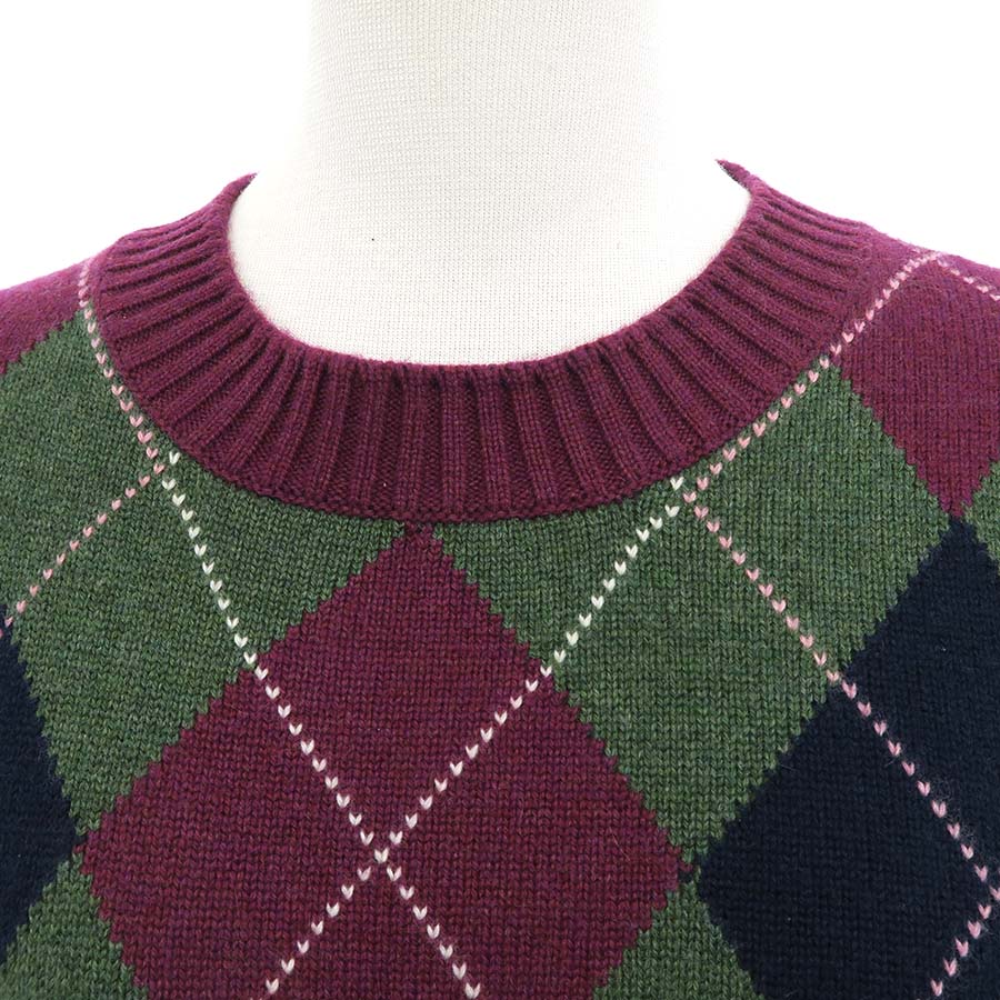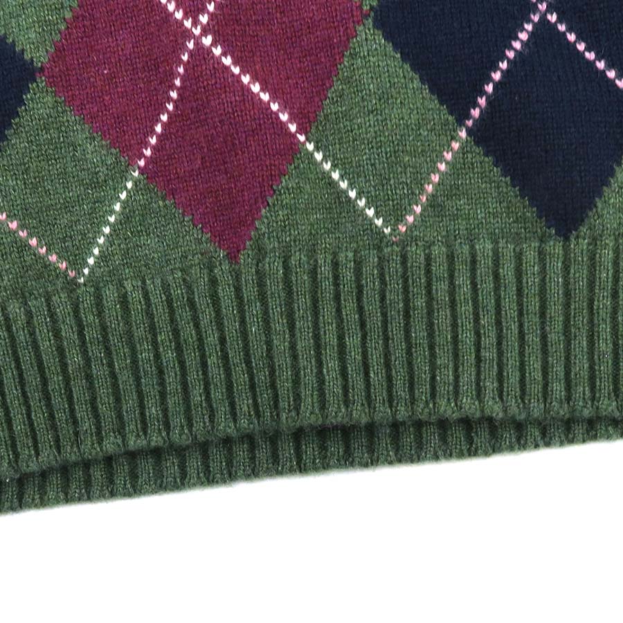 ネイビー・グリーン・えんじ色のアーガイル柄がオシャレなセーターです☆