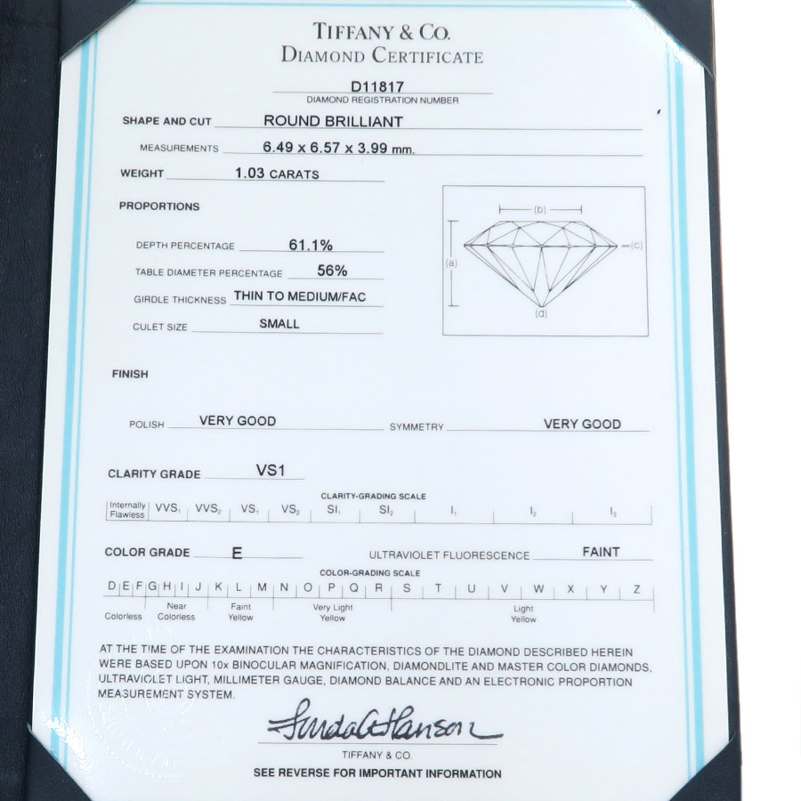 ティファニー ソリティアリング/D1.03ct
