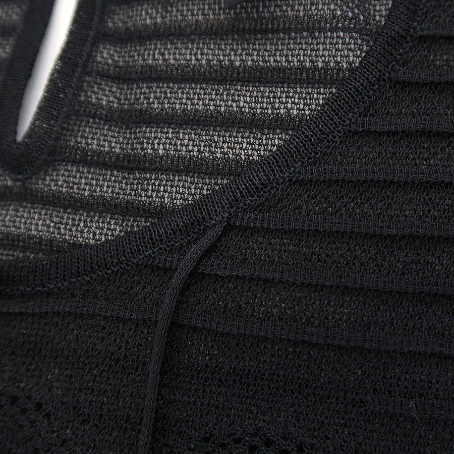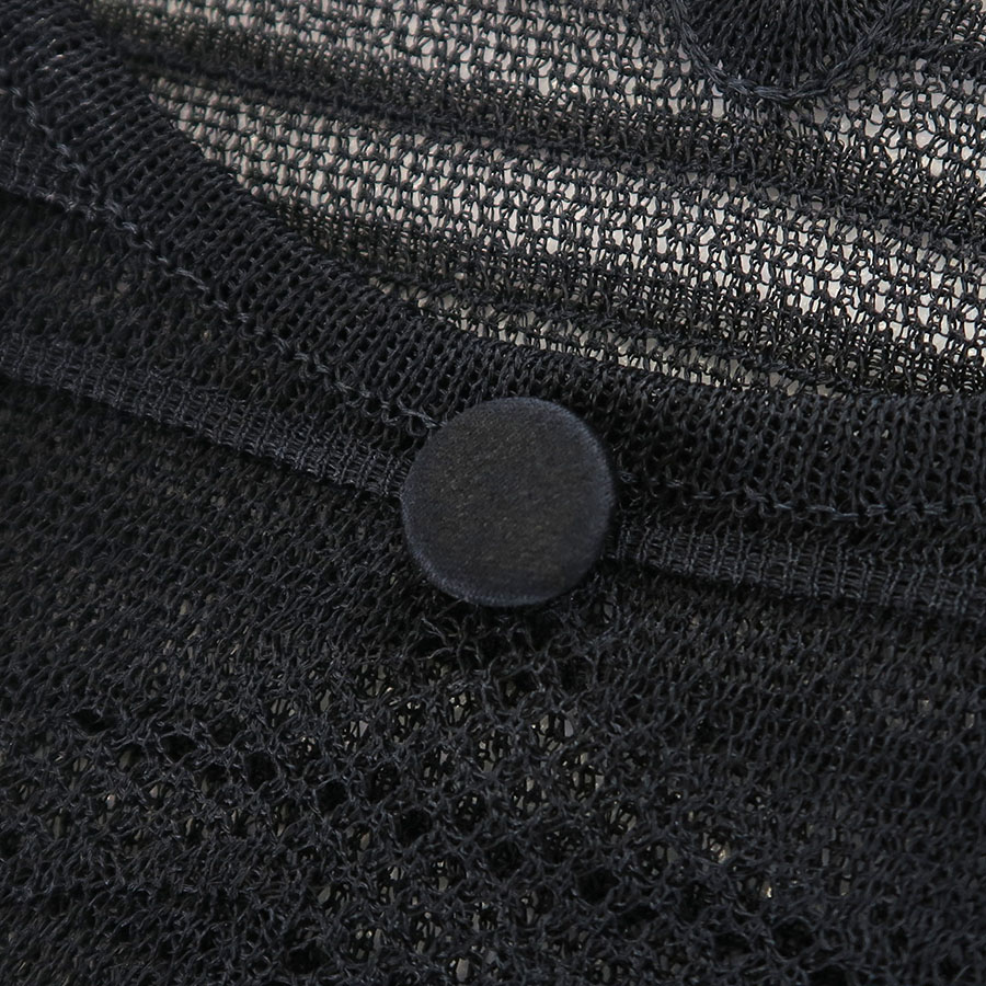 サッと着るだけで抜け感が出る、涼しげなメッシュ生地のプルオーバートップス☆生地のデザインと襟元からつけられたタッセル飾りが上品ながらも遊び心のあるオシャレなお品です!前のくるみボタンは飾りとなっており、トップス・インナー共に透け感がございます。