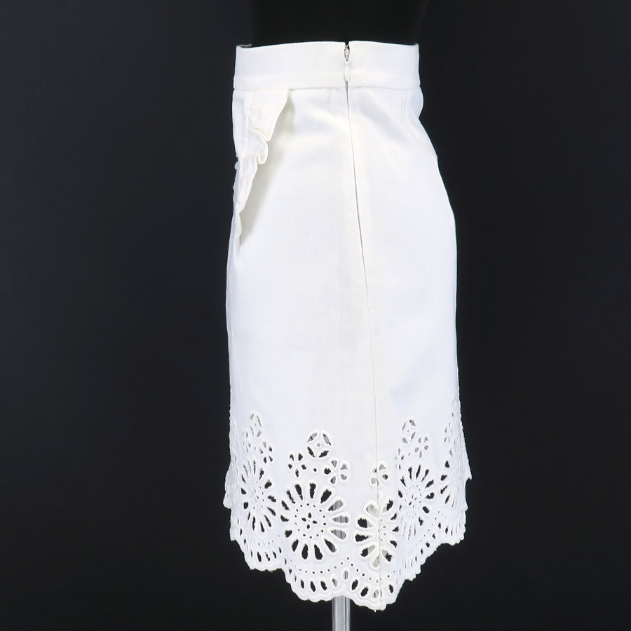 ミュウミュウからスカートが入荷しました。裾の花柄の型が可愛らしい一着☆サイドにファスナーが付いており、裏地はありません。