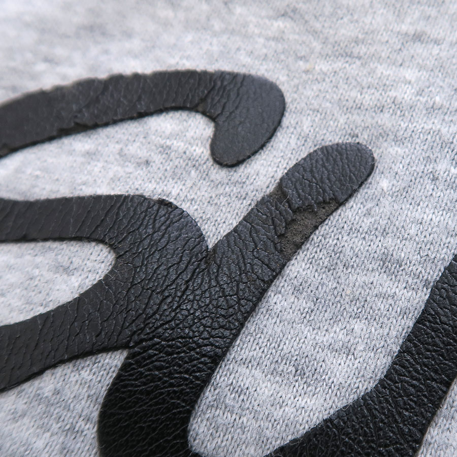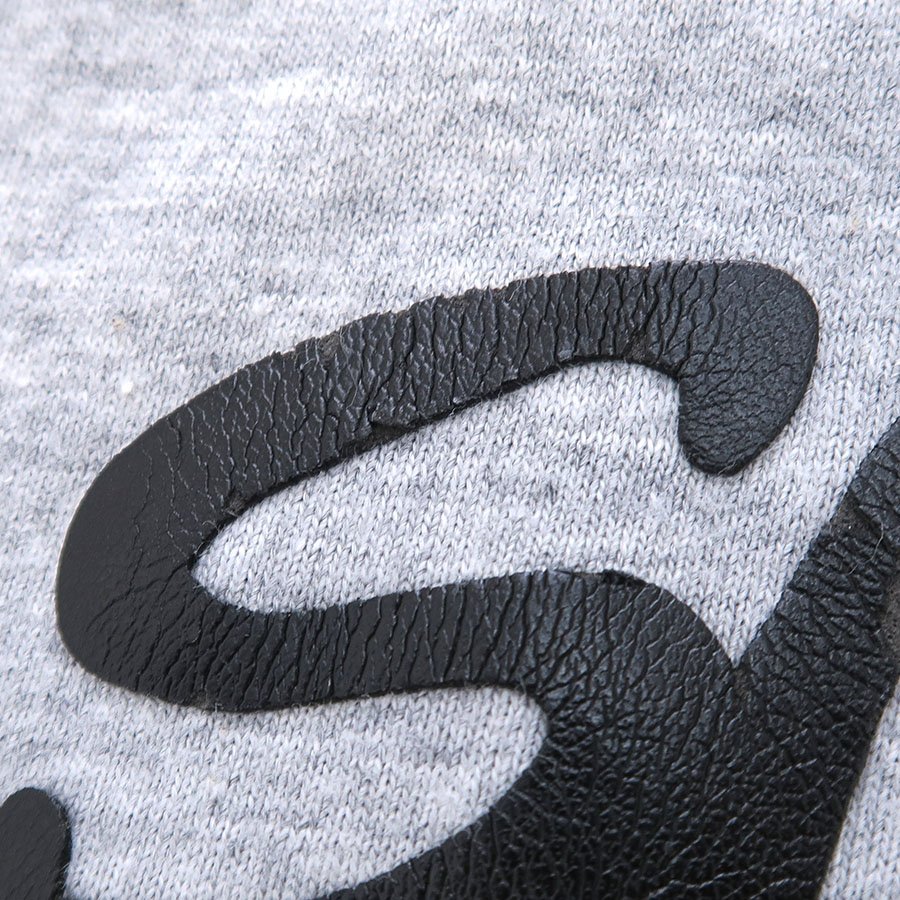 前のプリント部分にダメージがあり、全体的に起毛感や細かな毛玉が見受けられます。