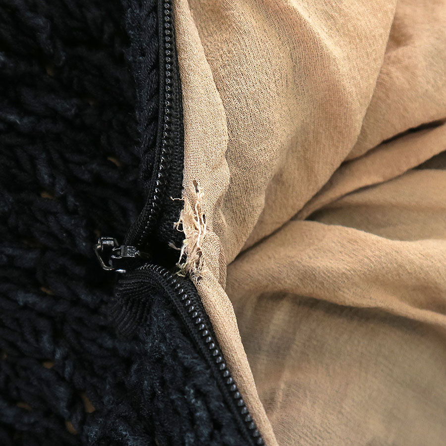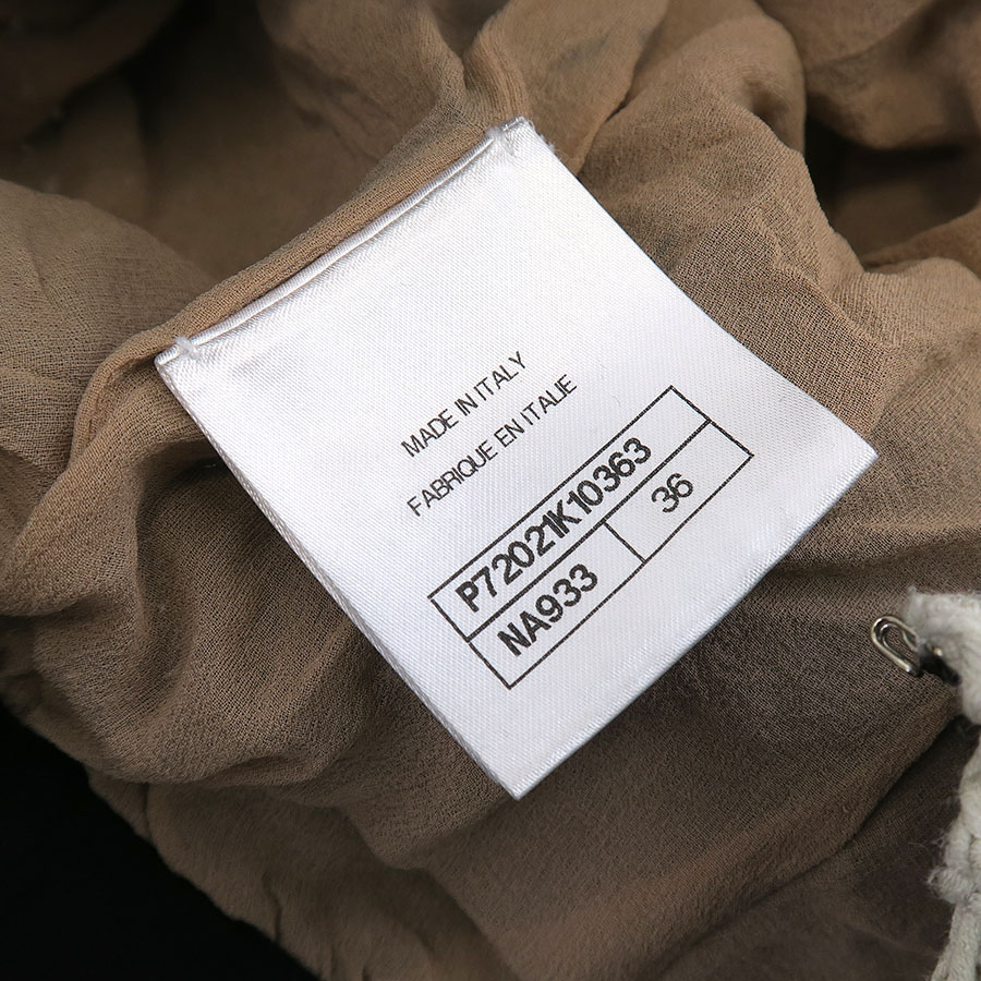 ブランドタグや品質タグ周りの裏地部分に黒い汚れ、ジッパー部分裏地に破れ、前裏地股近くに水シミの様な薄っすらと大きな汚れ等が見受けられますので、Bランクでのご紹介です。着用時に目立つダメージや汚れはなく、まだまだ問題なくご着用いただけます◎