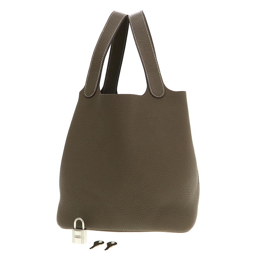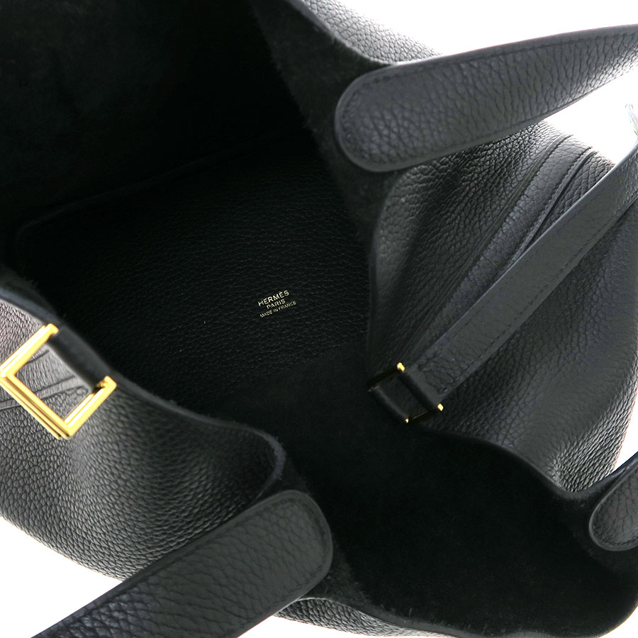 エルメスの人気ハンドバッグ『ピコタンロックMM』が入荷いたしました☆トリヨンクレマンスレザーを使用しており、傷・ダメージにも強く、末永くご愛用いただけます◎間口はベルト1つで簡単に開け閉めができて、カデナも付属しており、防犯面も安心。チャーム感覚でも楽しめます♪ブラックカラーでコーデを選ばずお使いいただけます!状態はAランクとなっており、本体の型崩れ、表面のスレ感、角スレ、ハンドルのスレ、コバスレ、間口周りのスレ感、内部のスレ、毛羽立ち感を感じます。使用感は僅かなに感じますが大きく目立つほどではない印象です。是非いかがでしょうか?