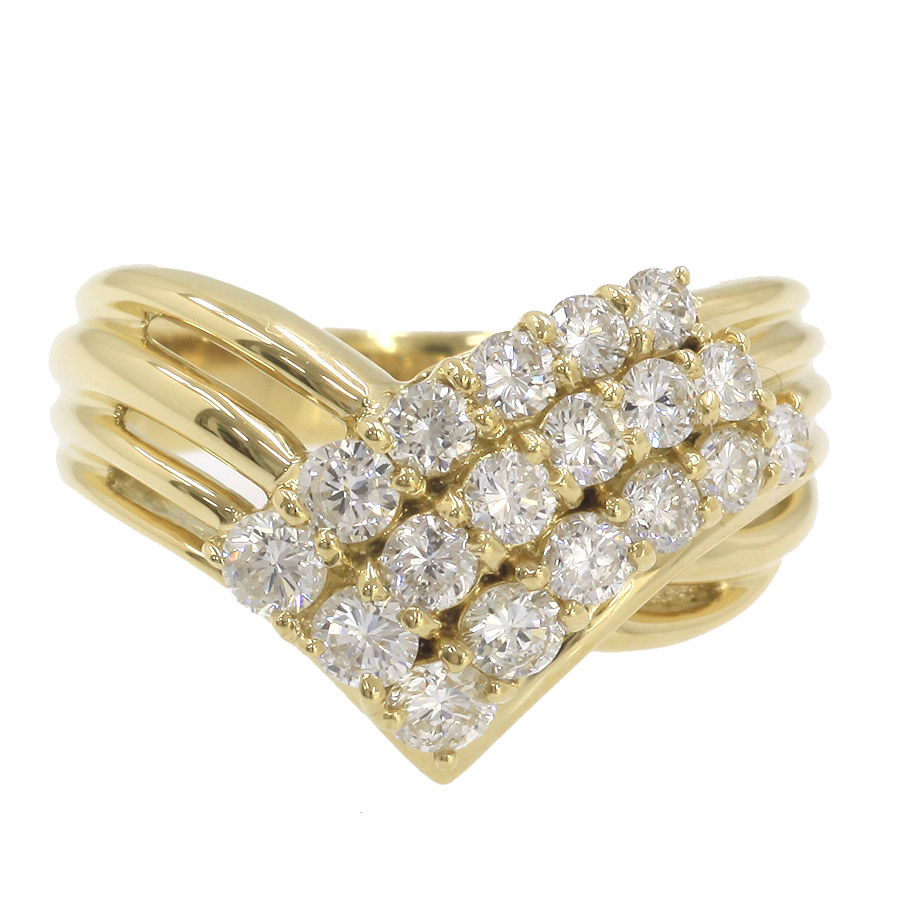 K18WGダイヤリングが入荷しました☆6本の先を束ねたようなデザインのリングに、上質なラウンドカットのダイヤモンドとバケットカットのダイヤモンドをセットした、エレガントなリング♪スマートなデザインにダイヤモンドが映えるアイテムとなっております◎1石のバケットダイヤと9石のラウンドダイヤを是非お手元でお楽しみ下さい☆