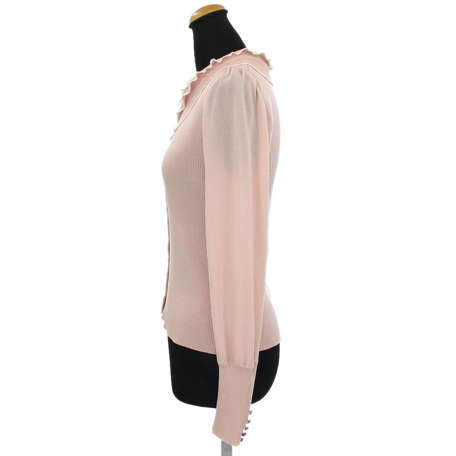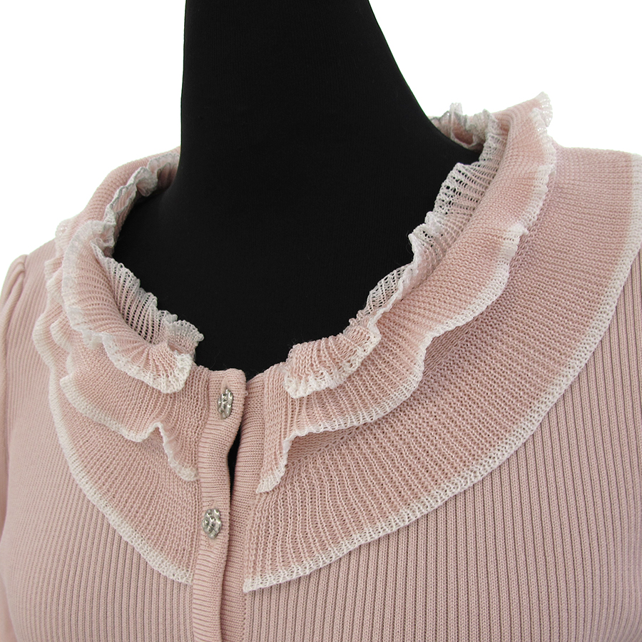 ルネからカーディガンの入荷です。ピンクのカラーが可愛らしく上品な印象◎ボタンもお花のデザインで女性らしさがアップ☆