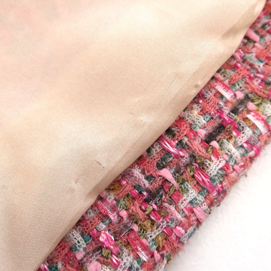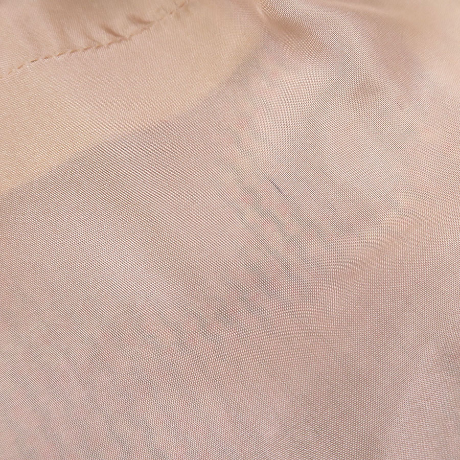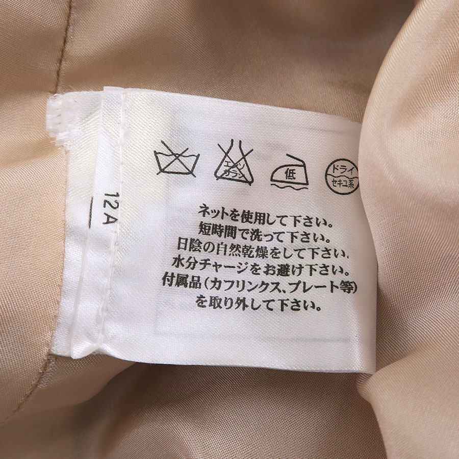 裏地ホック周りやジッパー周りに糸引きやアタリ、前身ごろ裏地左右の裾上、右裾から9cmほど上、後ろ身ごろ裏地裾から16cm程上の所、ヒップ下など裏地全体の所々にアタリ、全体に起毛感やシワ、収納跡、ヨレがみられるためBランク評価になります。