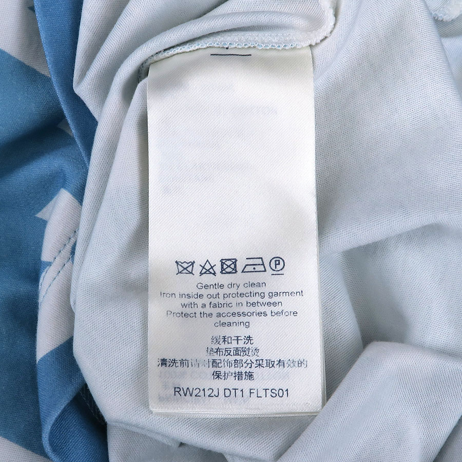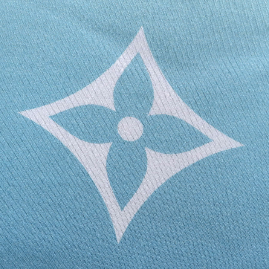 ペールグリーンからブルーまでの夏らしいグラデーションのTシャツにLVロゴとモノグラムフラワーがデザインされた爽やかな一品です。袖が大きめのフリルとなっているので涼し気で可愛らしいシルエットになっております。