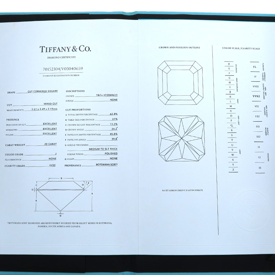 ティファニー ソリティアネックレス/スクエアカット/D0.20ct