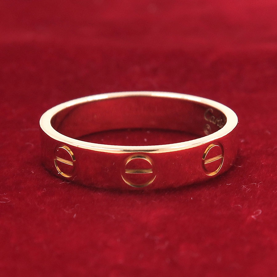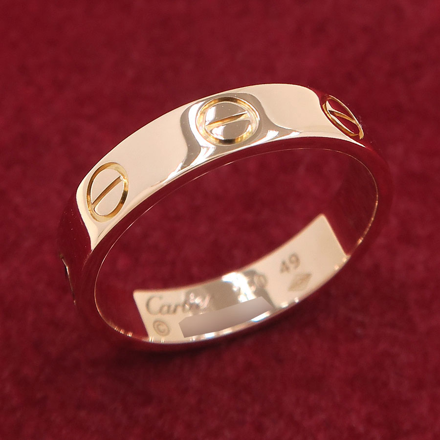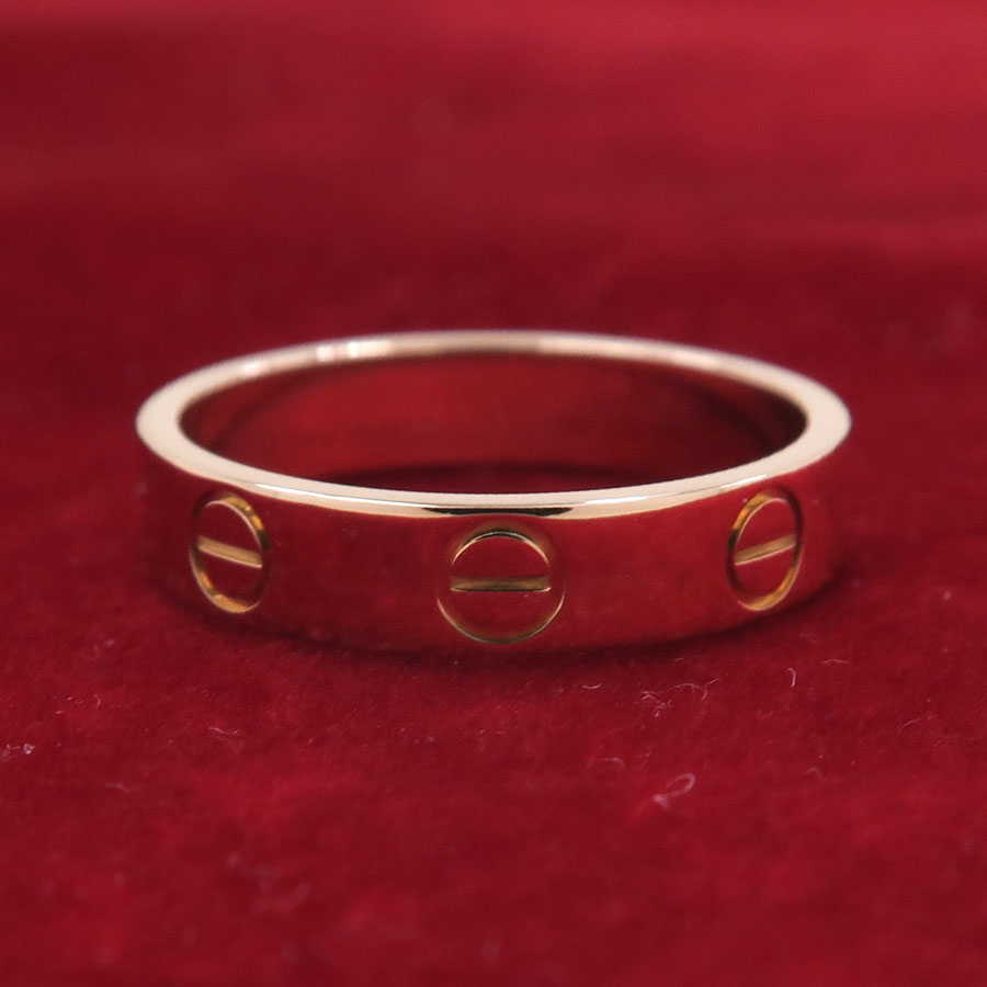 カルティエより、ミニラブリングのご紹介です☆通常のラブリングと比較して若干細身のつくりになっており、シンプルにご着用いただけます♪このボリュームならあまり宝飾に慣れていないお客様も苦になりませんね◎シンプルなデザインですので、普段使いからカジュアルにご着用頂けてオススメです♪是非お手元のアクセントとしてお楽しみ下さい☆