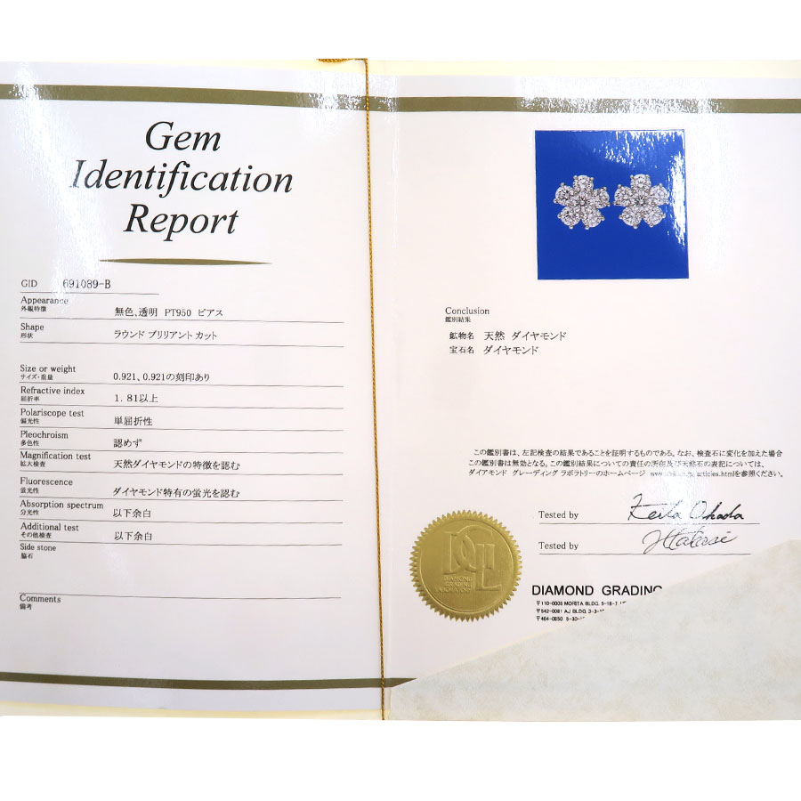 ギメル ダイヤピアス/D0.921ct×2