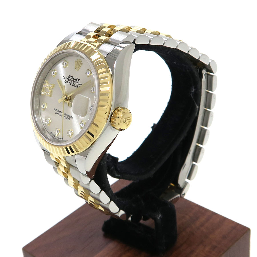 28mmと少し大きめで人気のレディース・デイトジャストが入荷しました。シルバーダイヤルに9Pスターダイヤ・Ⅸダイヤインデックスの組み合わせです。3時位置にデイト表示もございますので使い勝手の良いモデルです。