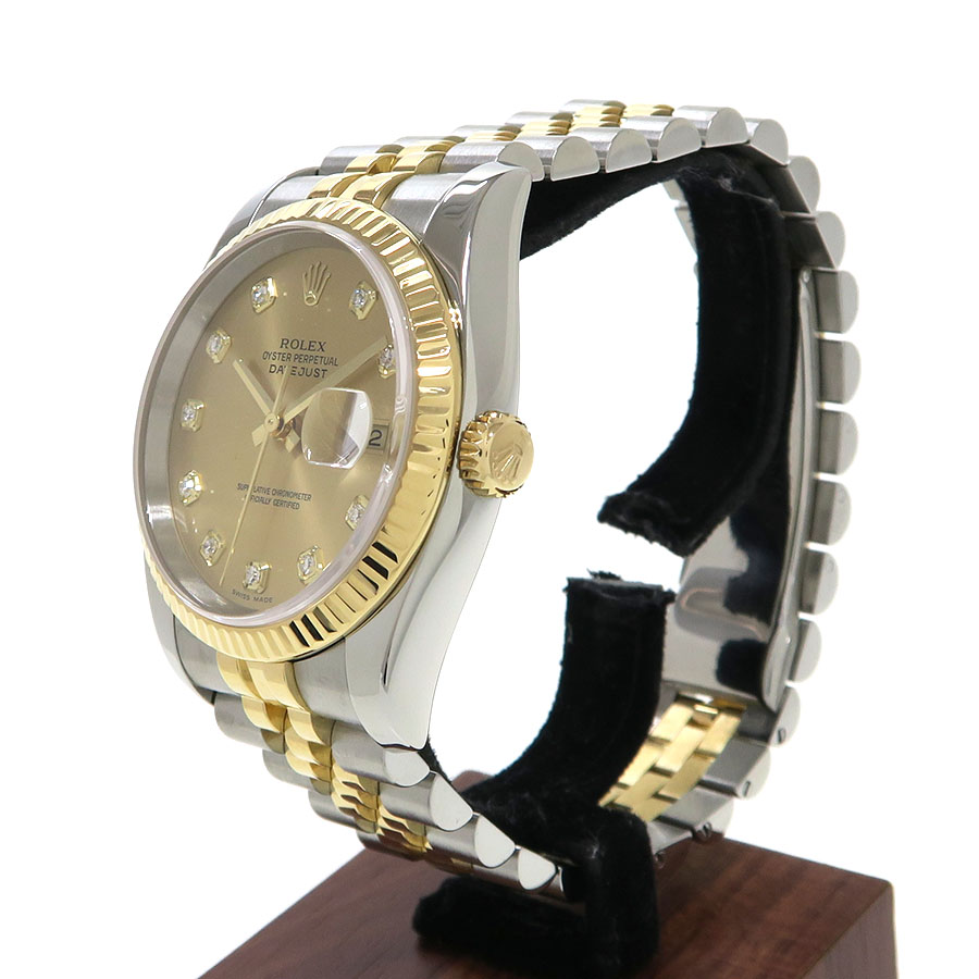 シャンパン文字盤に10石のダイヤモンドをインデックスにあしらったタイプです。