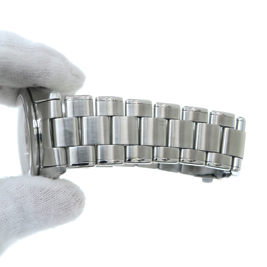 当社提携の時計修理工房にて外装の仕上げと電池交換を行っております。ベゼルやケースやブレスレットには消しきれなかった傷跡が薄く残ります。また、裏蓋に軽い小傷やスレがあり、ブレスレットに軽いヨレがございます。