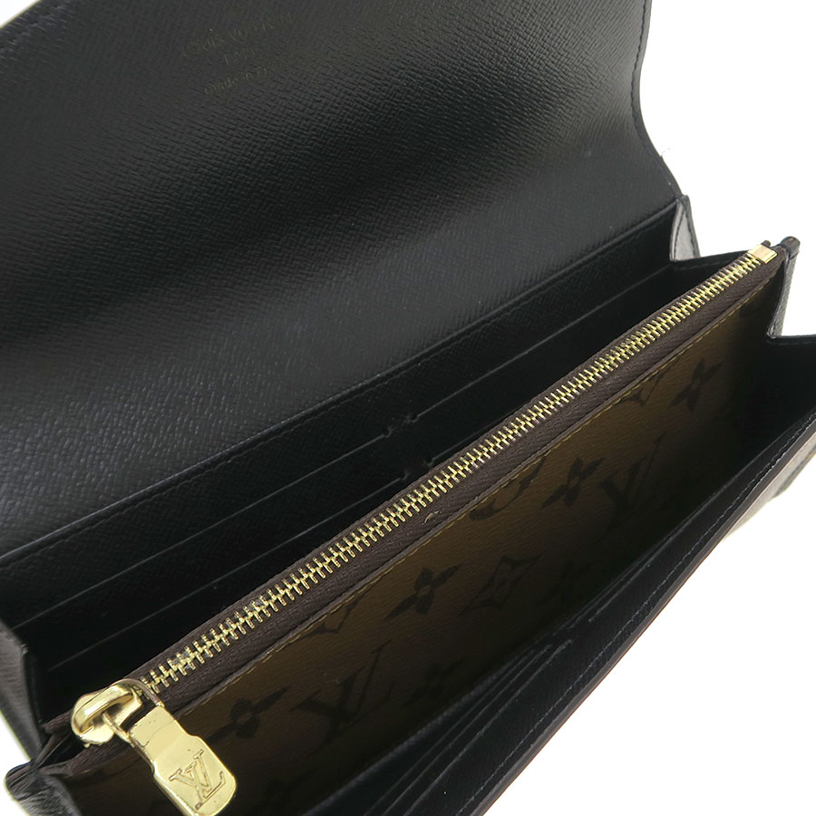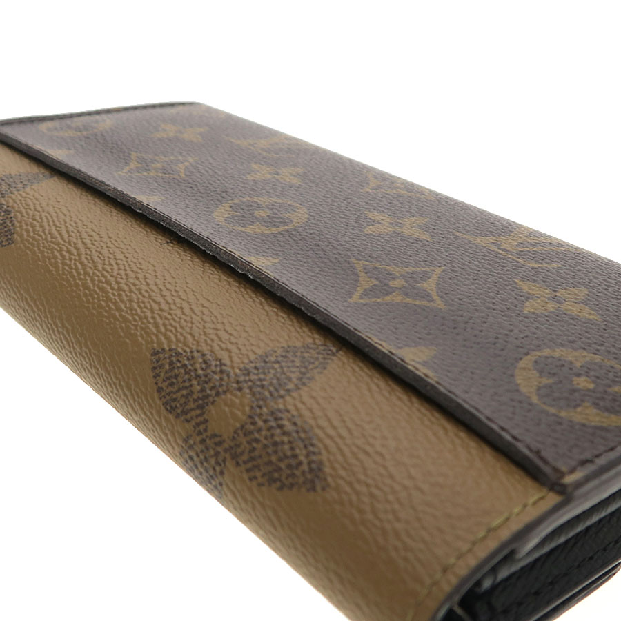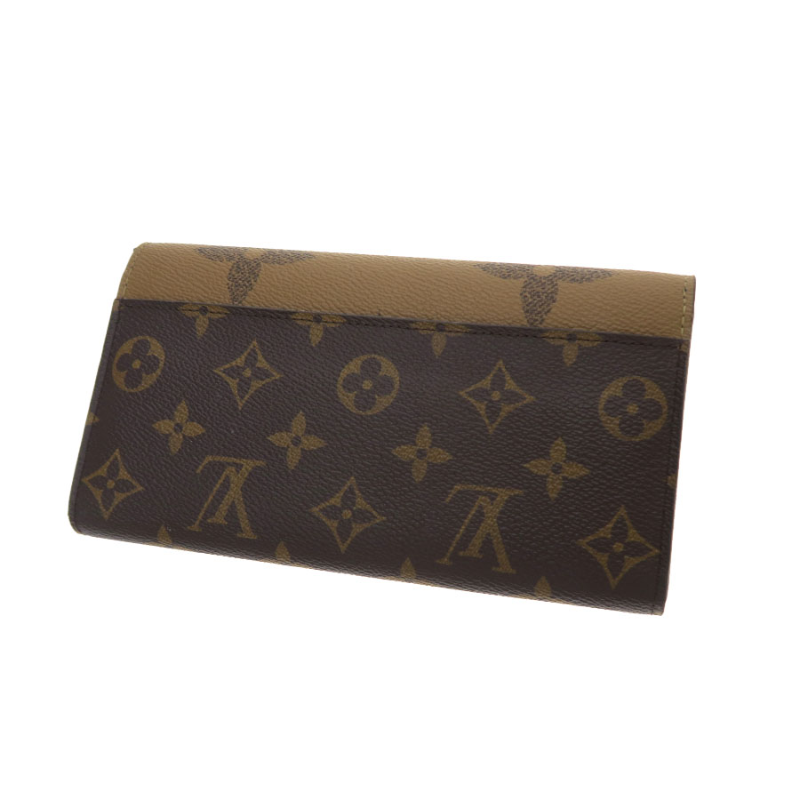 モノグラム・キャンバスとモノグラム・ジャイアント リバース キャンバスのエレガントな組み合わせで再解釈された「ポルトフォイユ・サラ」のご紹介です。 クラシカルな長方形の財布は、整理しやすい内装と豊富なポケットやカードスロットが魅力です。 エンヴェロップ型のフラップには、刻印を施したゴールドカラーのスナップがあしらわれております。