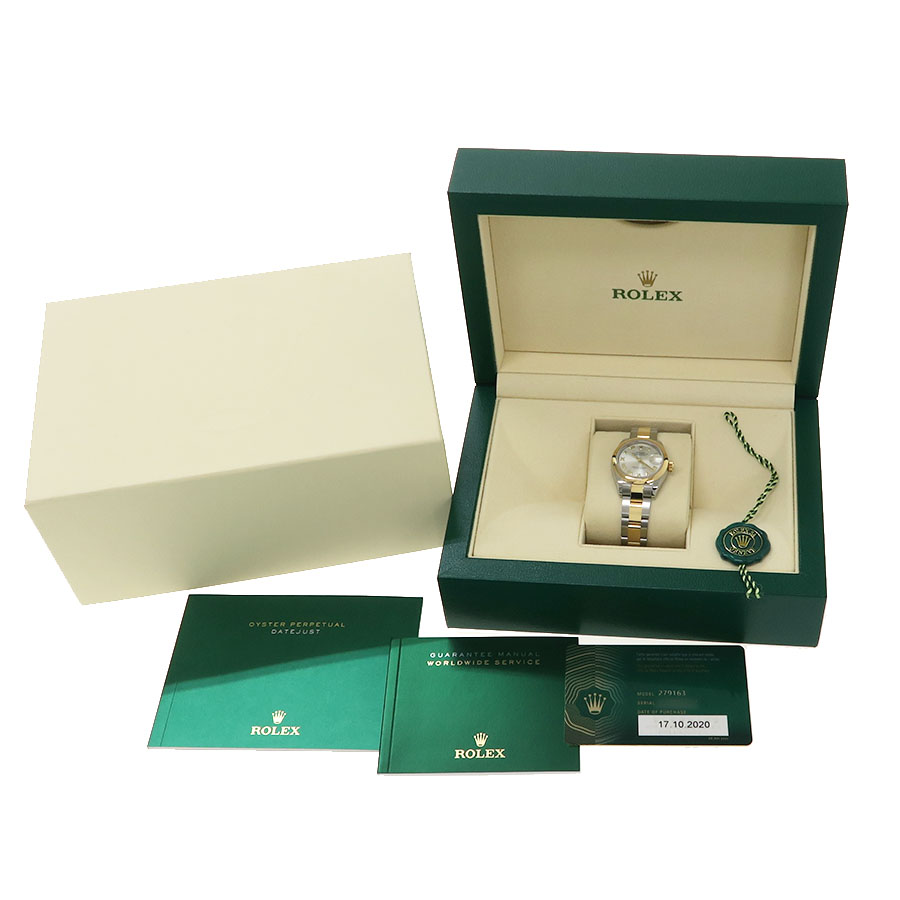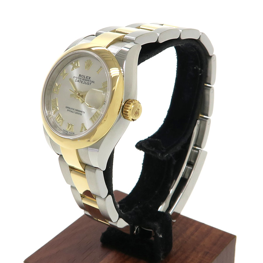 Ref.279163 ランダム番 コンビ・レディース・デイトジャスト。シルバーダイヤルにローマンインデックス オイスターブレスにポリッシュベゼルで高級感と重厚感を兼ね備えつつスポーティな印象もございます。