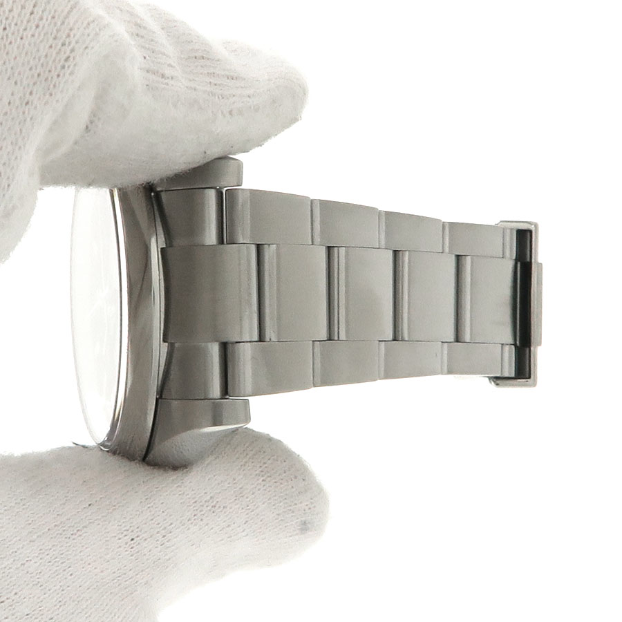 当社提携の時計修理工房にて機械点検と外装の仕上げを行っております。10時30分方向のケース側面に極僅かな小傷があり、裏蓋に軽いスレがございますが全体的に見て良好なコンディションです。