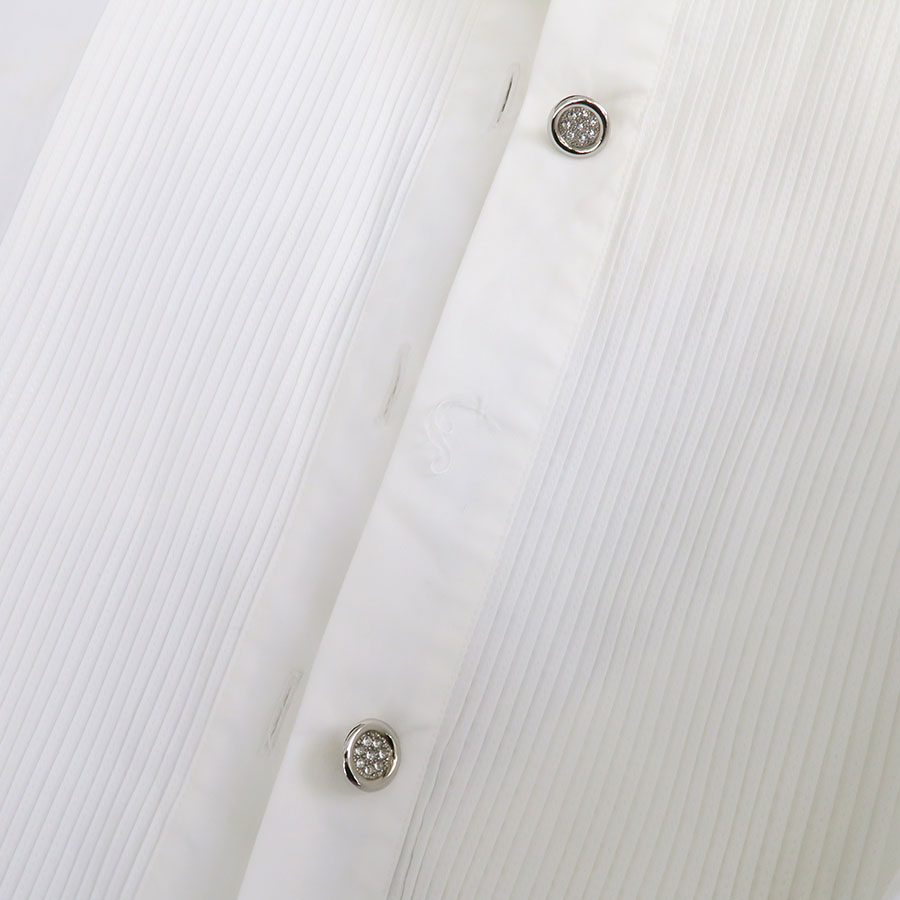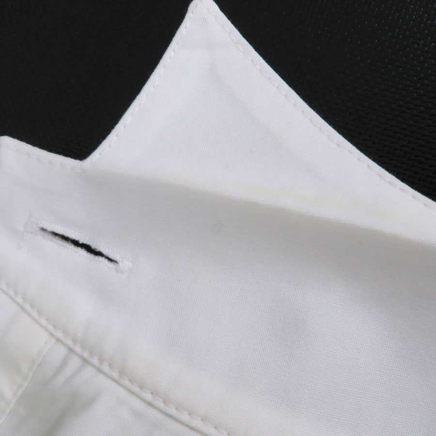 状態は全体にシワ・畳み跡、右襟回りにやや黄ばみ汚れ、上から5番目のボタン欠品などが見受けられますので、Bランクでのご紹介です。まだまだ問題なくご着用いただけます。