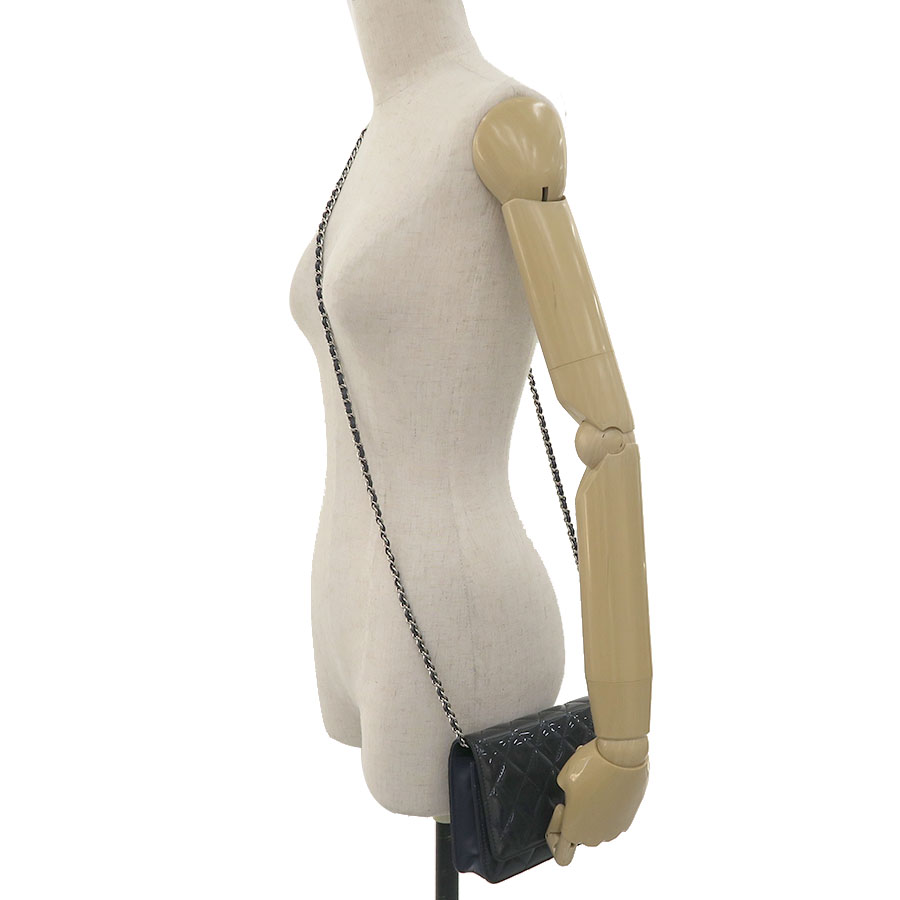 シャネル マトラッセ・パテント・チェーンウォレット