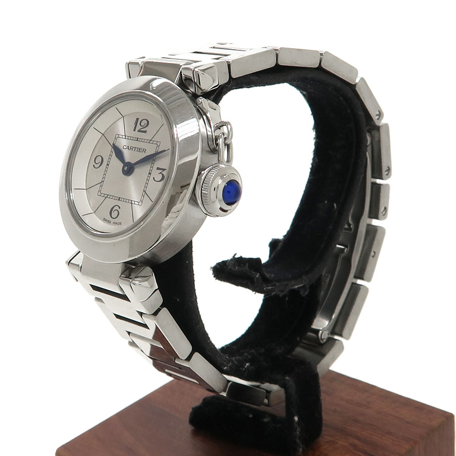 パシャのレディースモデル「ミスパシャ」が入荷しました。シルバーダイアルにブルースチール針とカルティエらしい組合せでどんなスタイルにも合せやすいデザインです。