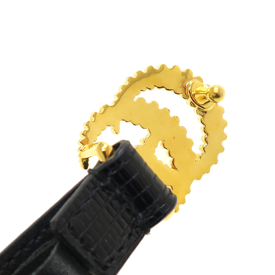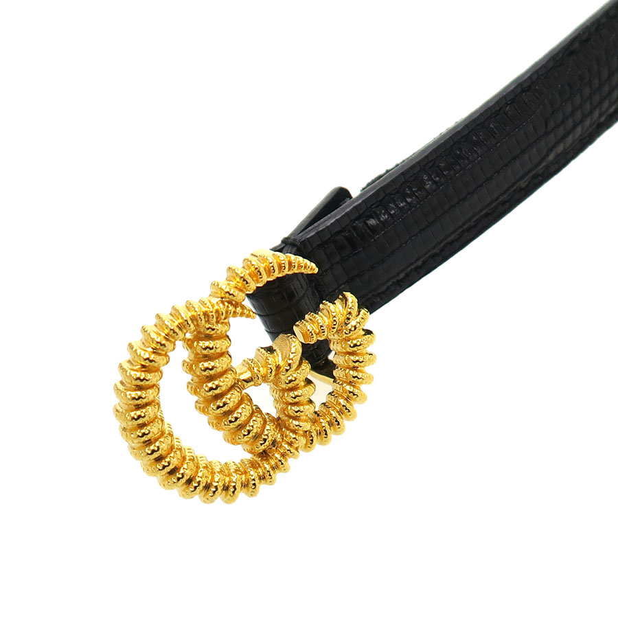 ゴールドカラーのGGバックルにブラックカラーの細身な素敵なベルトです☆