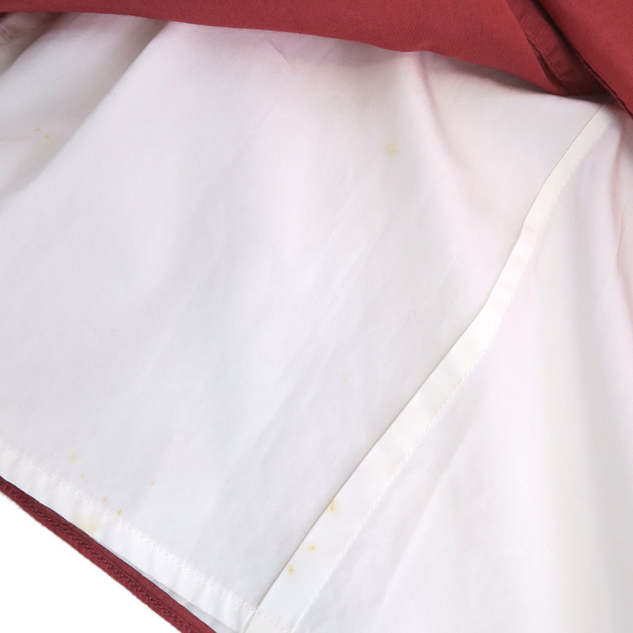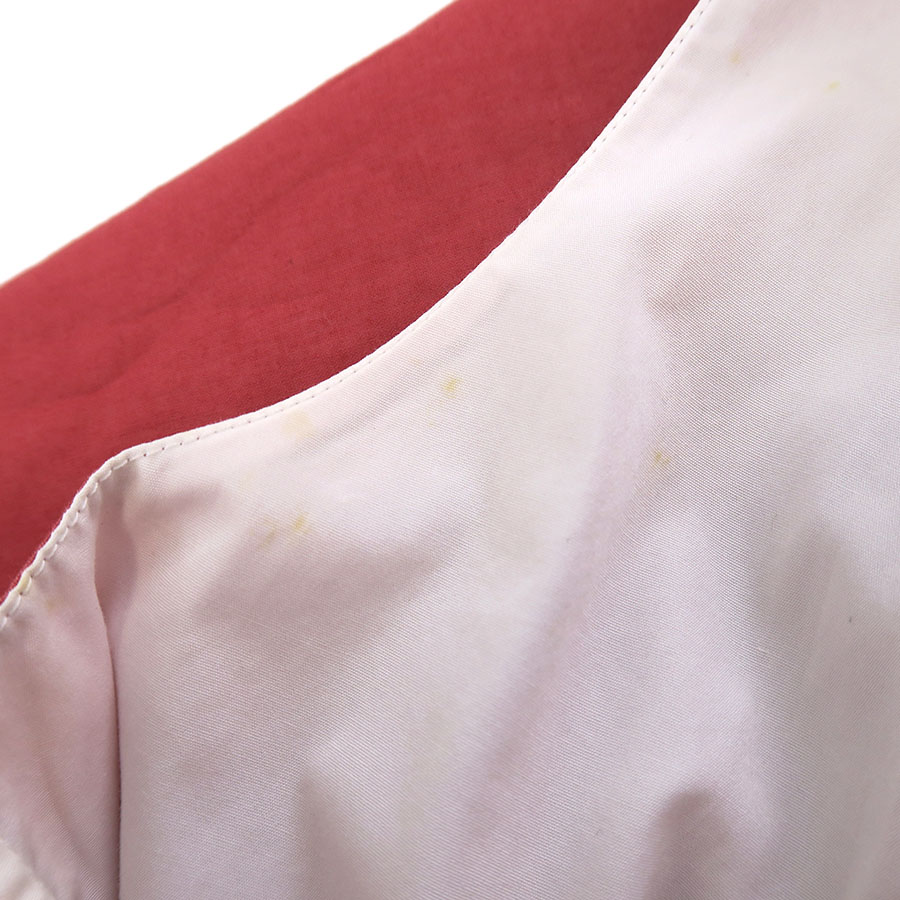状態は全体にシワ・薄汚れや後ろ襟周り・右脇裏・前身頃下、白インナーにシミ汚れ、後ろ身頃下に黒い点汚れ(白インナーにも)等が見受けられますので、Bランクでのご紹介です。普段着としては問題なくご着用いただけるお品です◎