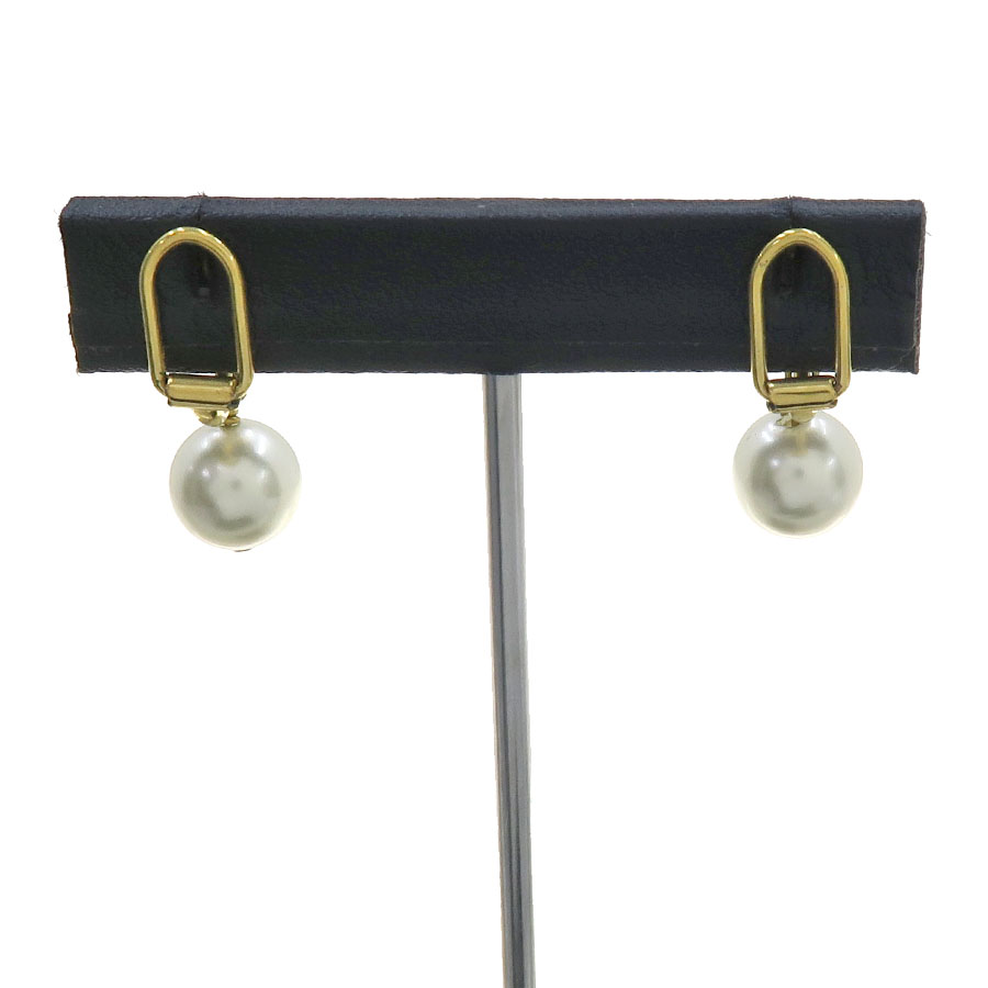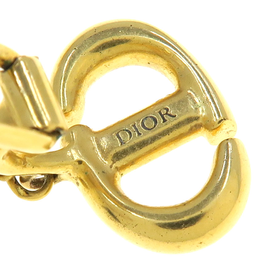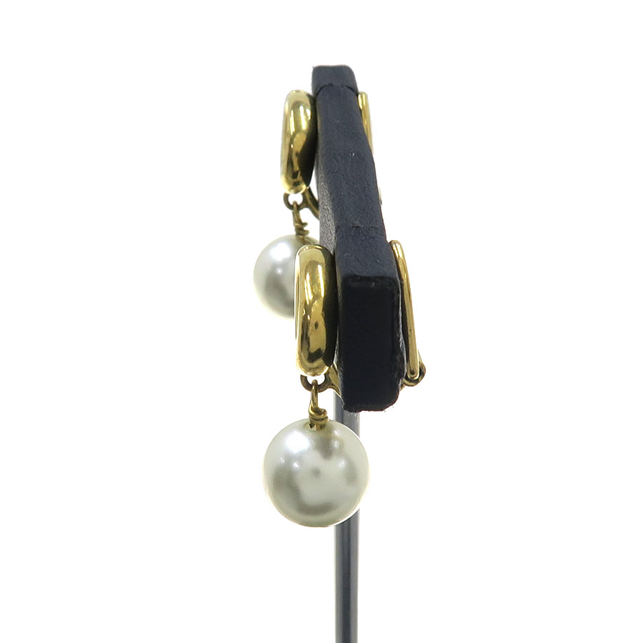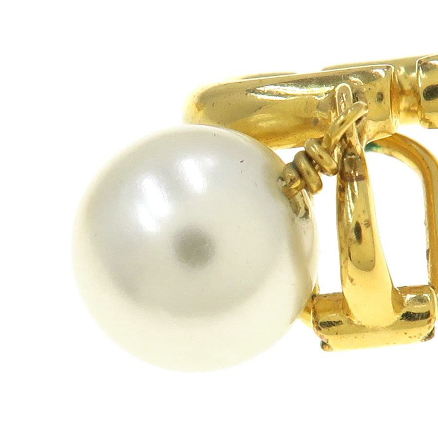 エレガントで洗練されたルックの「CD Navy (CD ネイビー)」クリップイヤリング。ゴールドトーンメタルのCDシグネチャーに、繊細なホワイト レジンパールがあしらわれています。