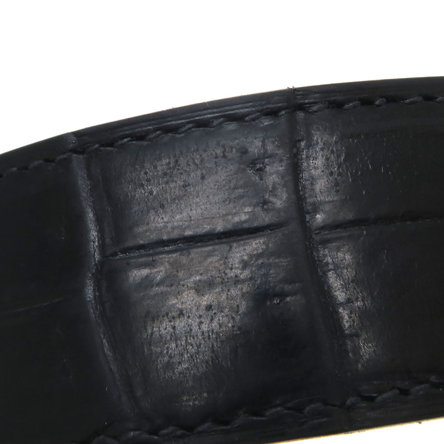 状態はバックルにややスレ・小キズ、裏にやや汚れ、ベルトにスレ・打痕跡・やや曇り・ベルト穴に広がりやヨレ等が見受けられますので、Bランクでのご紹介です。目立つ汚れやダメージはないので、まだまだ問題なくご着用いただけます。