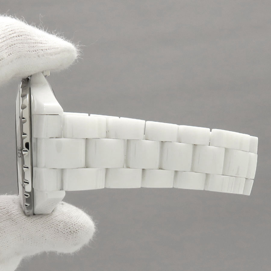 シャネルの人気シリーズ、J12ホワイトセラミックが入荷しました。スポーティーなモデルですがシャネルのエスプリでラグジュアリーなテイストも醸しています。ケース、文字盤ともに白い色合いのスタンダードな38mmオートマティックモデルですのでオン、オフ問わずどちらでもご愛用頂ける納得の1本です。