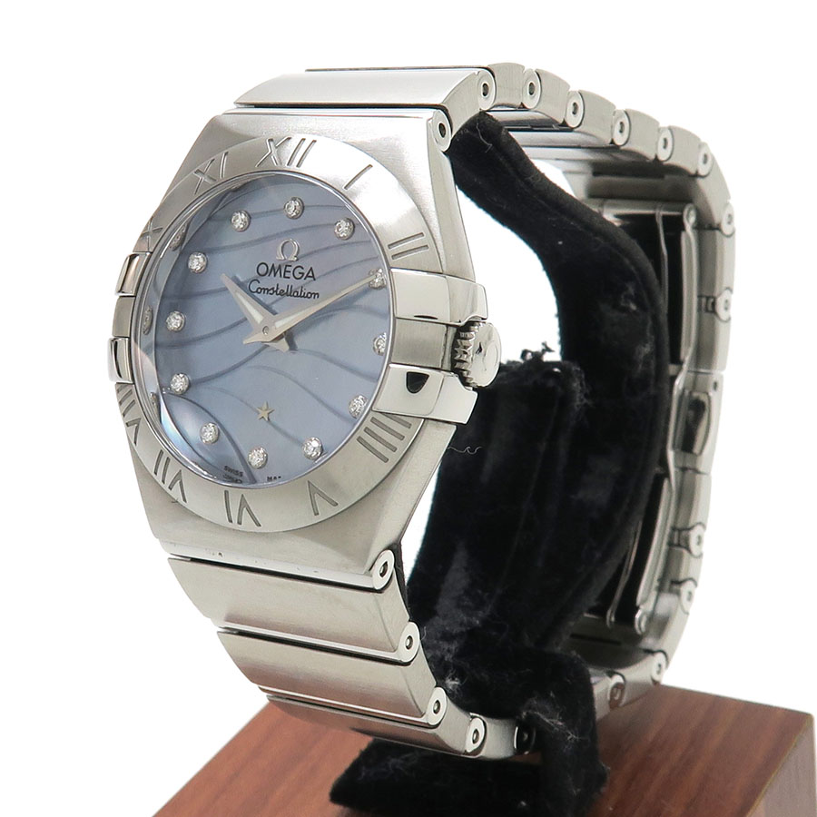 オメガの最高級ライン「コンステレーション」が入荷致しました。穏やかな波のような模様が彫刻されたブルーシェル文字盤に12Pダイヤを散りばめ、落ち着きのある艶消しステンレスケースで気品のある組み合わせに仕上がっています。ムーブメントにはオメガの信頼度が高いクォーツ・プレシジョン・ムーブメント、キャリバー1376を搭載、使いやすく、正確に時を刻みます。
