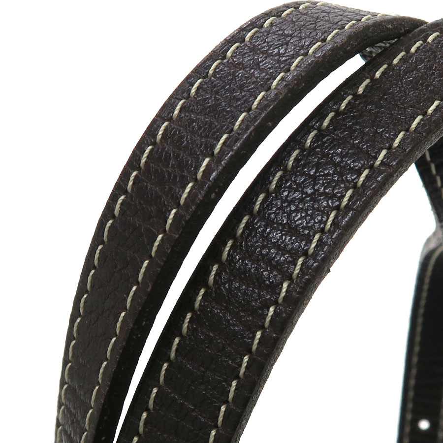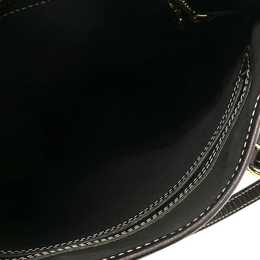 状態はBランク。型崩れ、間口や底周りにスレ、ベルトにヨレとコバスレ、内部に薄汚れと収納臭があります。