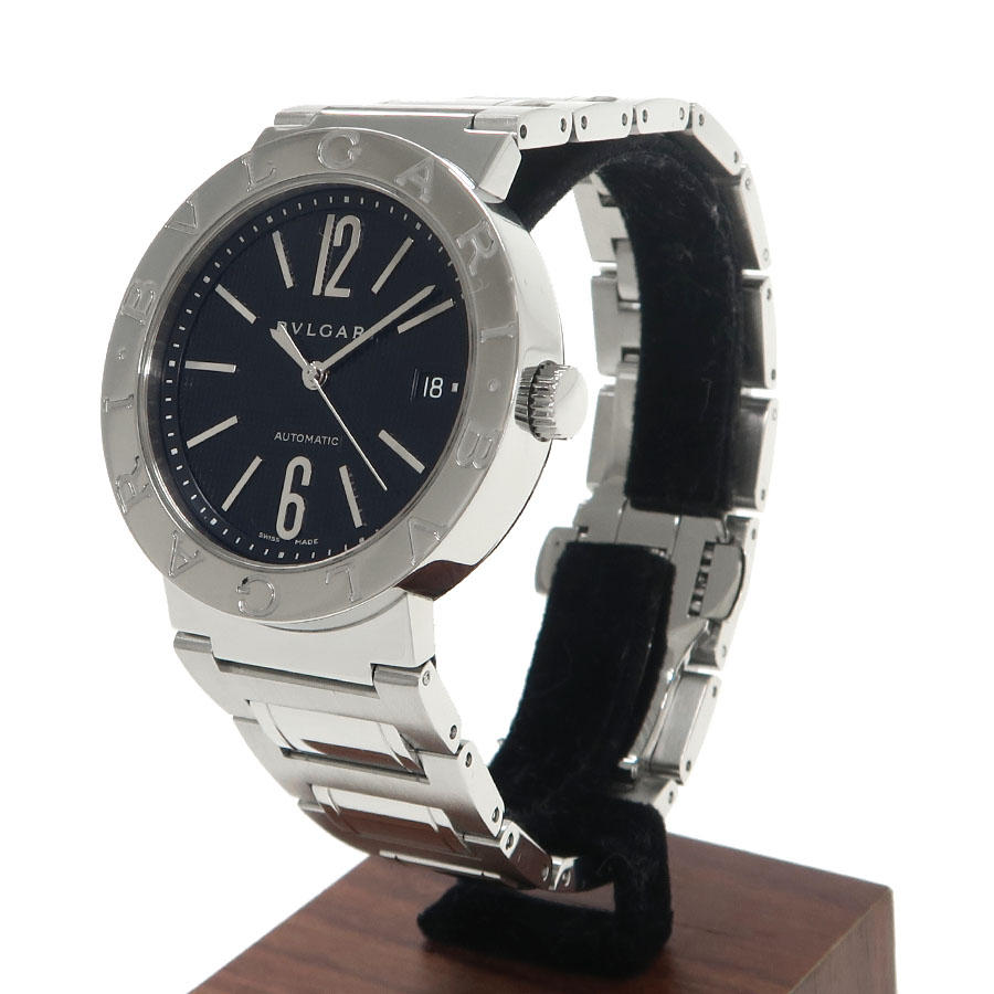 ブルガリを代表する人気モデル、「ブルガリブルガリ」が入荷致しました。1977年に誕生した 「ブルガリ・ブルガリ」 は、シリンダーの断面図をイメージしたと言われるユニークなラウンドフォルムが特徴で、ブルガリウォッチの定番シリーズとして親しまれています。黒文字盤に鏡面、艶消しのステンレスデザインで高級感も演出しながらカジュアルにもビジネスシーンにも合わせやすいデザインが魅力の1本です。