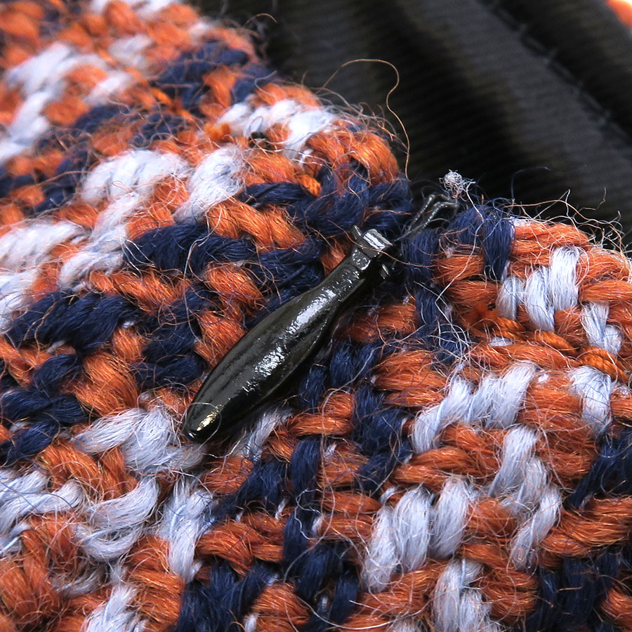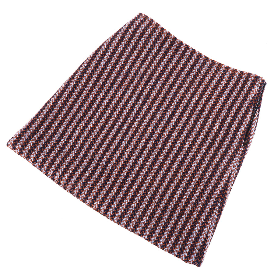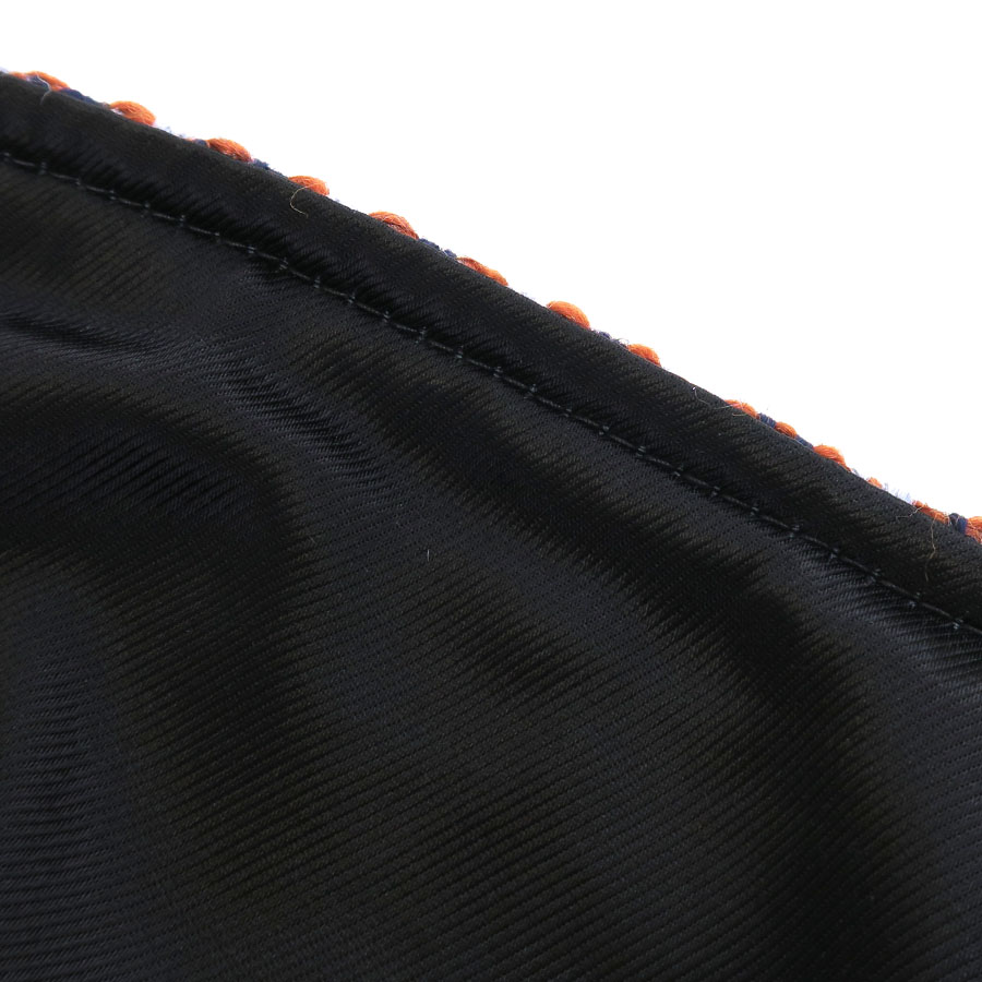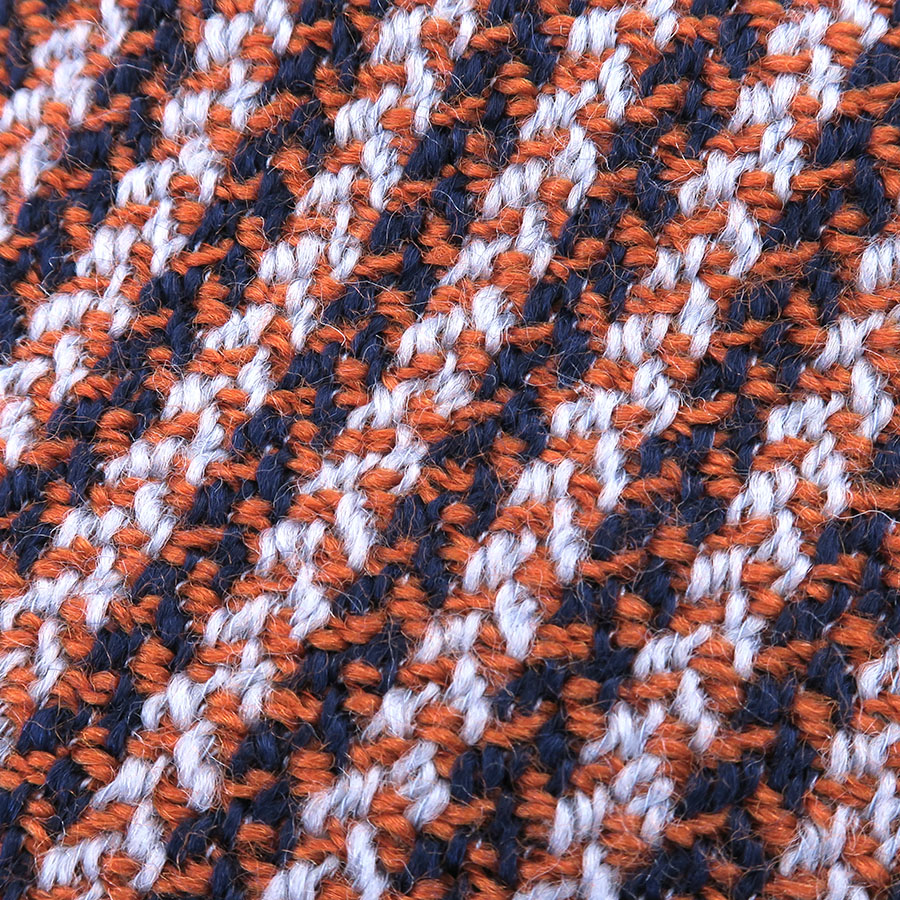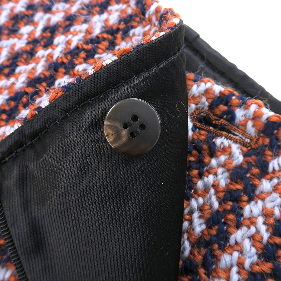 上質なウール素材を使用した、オレンジ・ネイビー・淡いライトブルーの糸が斜めに走る、伝統的なヘリンボーン柄の織り模様が素敵な一着☆