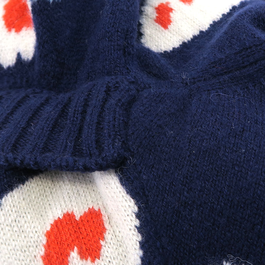 ブランドタグにくり抜いたような穴、ブランドタグ下品質タグに糸引き、全体にニット特有の起毛や糸埃の付着・端の毛羽立ち、袖のヨレ、脇下に若干のスレ感、肩周りに若干のハンガーによる型崩れが見受けられる為Bランクでのご紹介となりました。着用時に目立つダメージや汚れはなく、まだまだ問題なくご着用いただけます◎