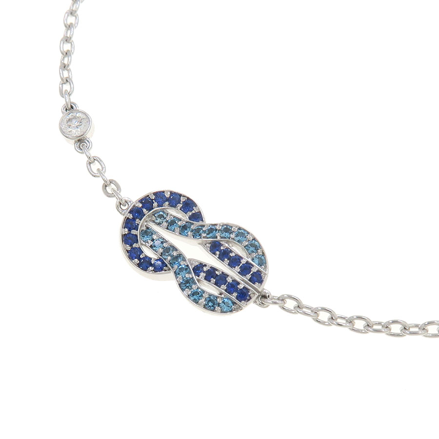 フレッドより、シャンスアンフィニブルーシェイズブレス/ミディアムが入荷いたしました☆ブレスレットやネックレスなどでもお馴染みのこちらのシリーズ。今回の入荷は、サファイア&トパーズのあざやかなブルーが美しい"ブルーシェイズ"のブレスレットです。チェーンにはダイヤモンド1石があしらわれていてアクセントに。フレッドらしい特徴的なデザインで、思わず目を引きますね♪人気アイテムですので、気になった方は是非この機会をお見逃しなく☆
