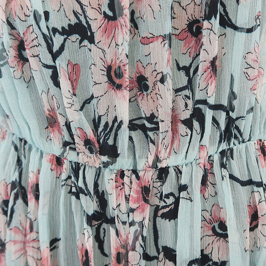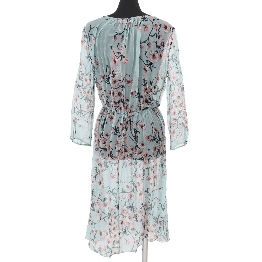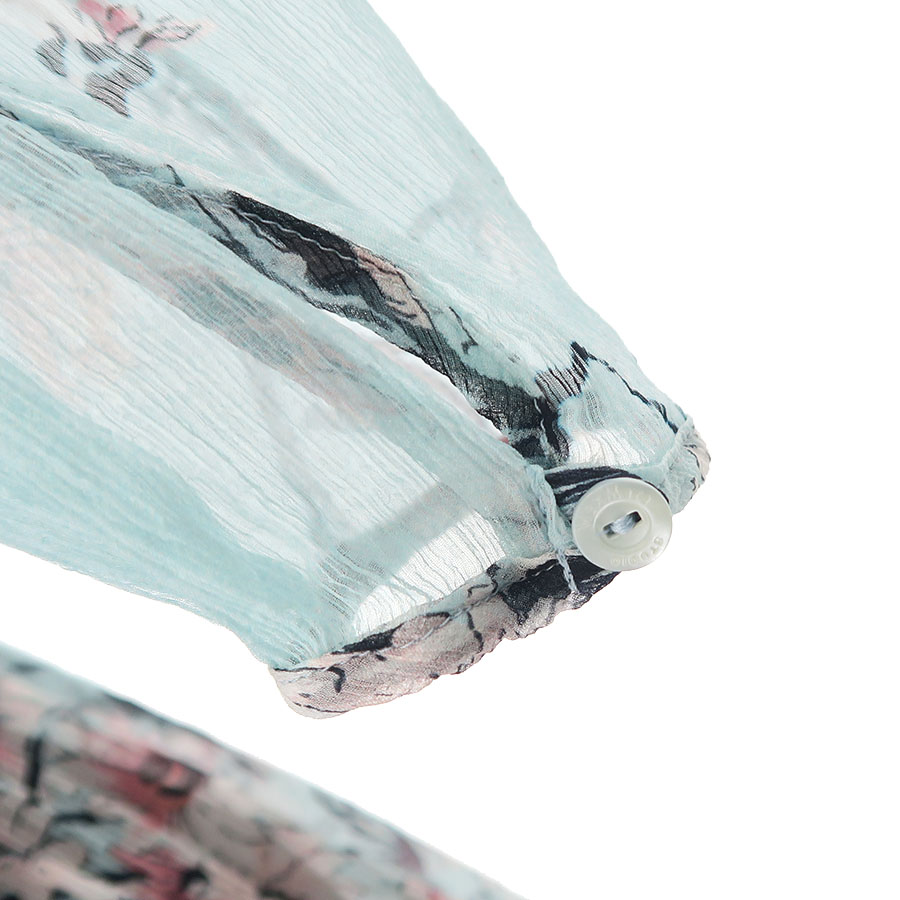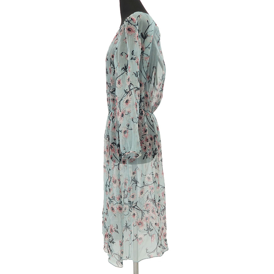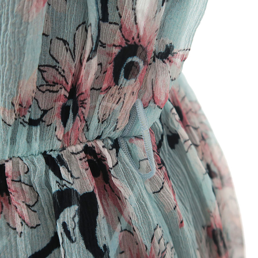 ふんわりとしたシアー素材でピンクのお花が描かれています。透けるのでペチコートなどのインナーは必須です。